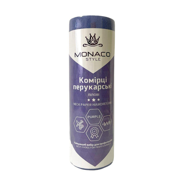 Комірці паперові ТМ Monaco Style, лілові, на пластиковій шпулі - це яскравий акцент у щоденній роботі майстра, який поєднує функціональність, стиль і турботу про клієнта. Виготовлені з високоякісного еластичного паперу, вони чудово розтягуються та щільно прилягають до шиї, створюючи надійний захист від потрапляння волосся, фарби, води чи інших засобів. Ліловий колір додає візуальної привабливості та виокремлює ваш сервіс серед інших, що особливо важливо для салонів, які прагнуть підкреслити свій унікальний стиль і увагу до деталей.